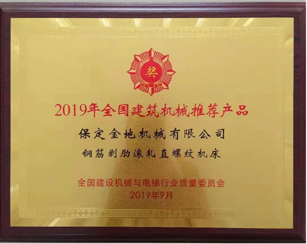 25日晚上全國(guó)建設(shè)機(jī)械與電梯行業(yè)質(zhì)量委員會(huì)在無(wú)錫太湖國(guó)際博覽中心旁君來(lái)世尊酒店舉辦了“2019年建機(jī)推薦頒獎(jiǎng)典禮暨中外客商迎賓晚宴”。我公司的主營(yíng)產(chǎn)品鋼筋剝肋滾軋直螺紋機(jī)床喜提“2019年全國(guó)建筑機(jī)械推薦產(chǎn)品”,“金地”品牌又一次用高品質(zhì)產(chǎn)品獲得大家的認(rèn)可!